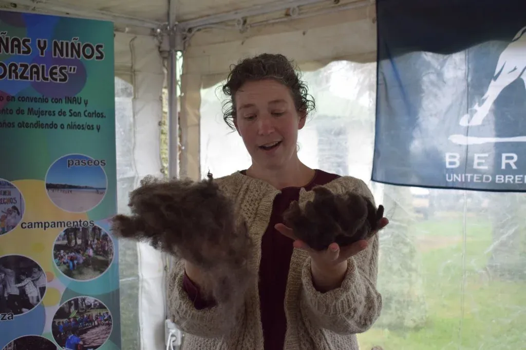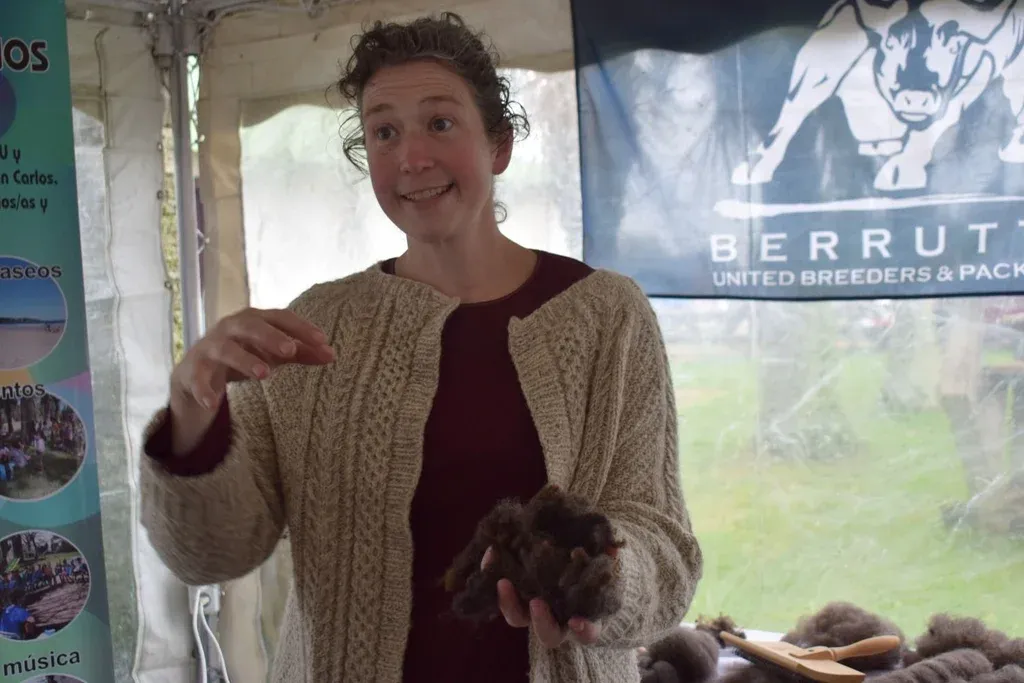 En la Expo Rural San Carlos Megan explicó cómo trabaja la lana en su establecimiento La Piccolina.