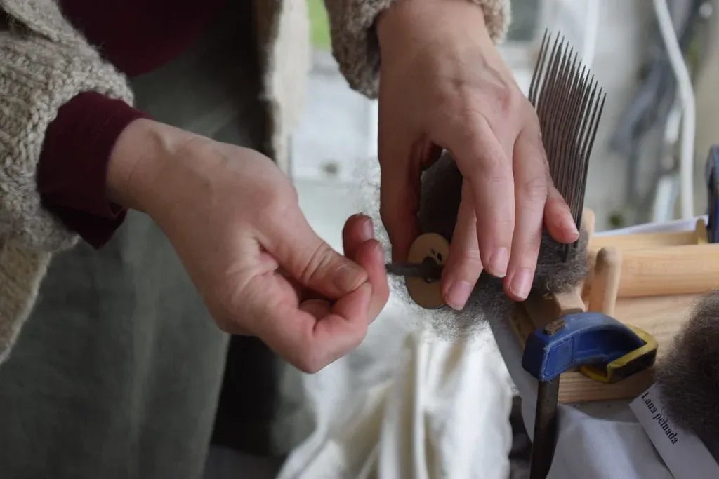 El curso de hilado duró dos horas, allí, con una rueca, aprendió cómo trabajar con la fibra de lana, con tinturas y datos sobre la producción lanera. Ese día le enseñaron la técnica pero lo que le quedó claro es que para perfeccionarla solo hacía falta práctica, por eso se compró su propia rueca y comenzó lo que sería su camino en el mundo de la lana.