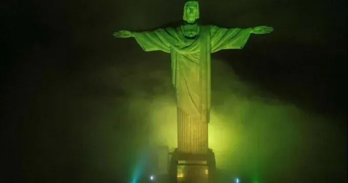 En Río de Janeiro, el Cristo Redentor se tiñó de verde y amarillo.