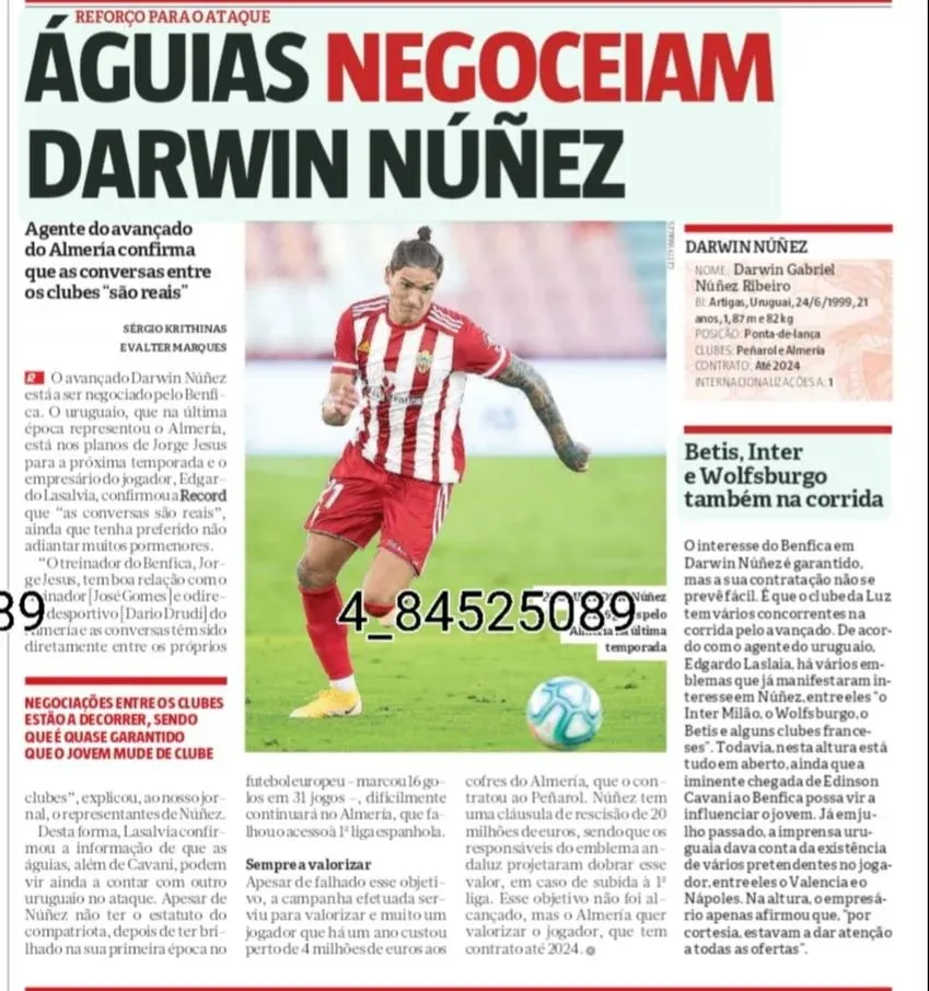 Sin embargo, horas después, como consecuencia de los altos montos de la operación (48 millones de euros por tres años, la mitad, 24 millones eran libres para Cavani y el otro 50% impuestos) hicieron caer el acuerdo. Fue entonces cuando tomó cuerpo la posibilidad que Núñez se transformara en la apuesta ofensiva del equipo lusitano.