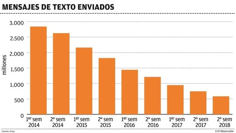 Por más que el SMS ha bajado, se sigue enviando, hay un volumen interesante. No se puede sustituir esa mensajería simplemente por lo que hoy existe. El pago de servicios también se está haciendo por mensajes de texto, y otros se hacen por aplicación. Un caso concreto es que casi todos los montevideanos pueden pagar el estacionamiento tarifado, y lo ofrecen por mensaje de texto, o por una aplicación, según la telefónica.