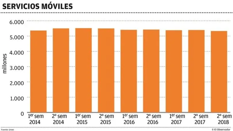 Lo mismo sucede con los minutos de servicios móviles. En el primer semestre de 2017, el tráfico fue de 2.701.590.969 y en igual período de 2018 la cifra fue 2.293.072.714. En cambio, los servicios móviles superan a la población de Uruguay –5.326.789– y la banda ancha fija pasó de 933.417 servicios a 965.426 en el período comparado anteriormente.