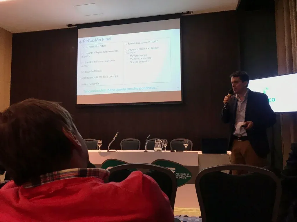 Entre los beneficios, mencionó que los mercados están y que Uruguay tiene un lugar privilegiado dentro de los mismos; que la trazabilidad es una puerta de acceso; que Uruguay tiene lotes de razas británicas uniformes como los solicitan; que es un referente de calidad y prestigio;y que la demanda juega a favor.