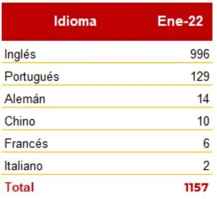 El inglés es el idioma más demandado por las empresas, según el monitor laboral de Advice. En enero 2022, 996 fueron las propuestas que solicitaron contar con conocimientos de este idioma, lo que representó el 22% del total de llamados.