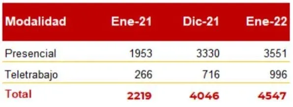 En enero de 2021 el 12% de las propuestas laborales manejaba la modalidad de trabajo remoto; en enero de 2022 la participación alcanzó el 22%.