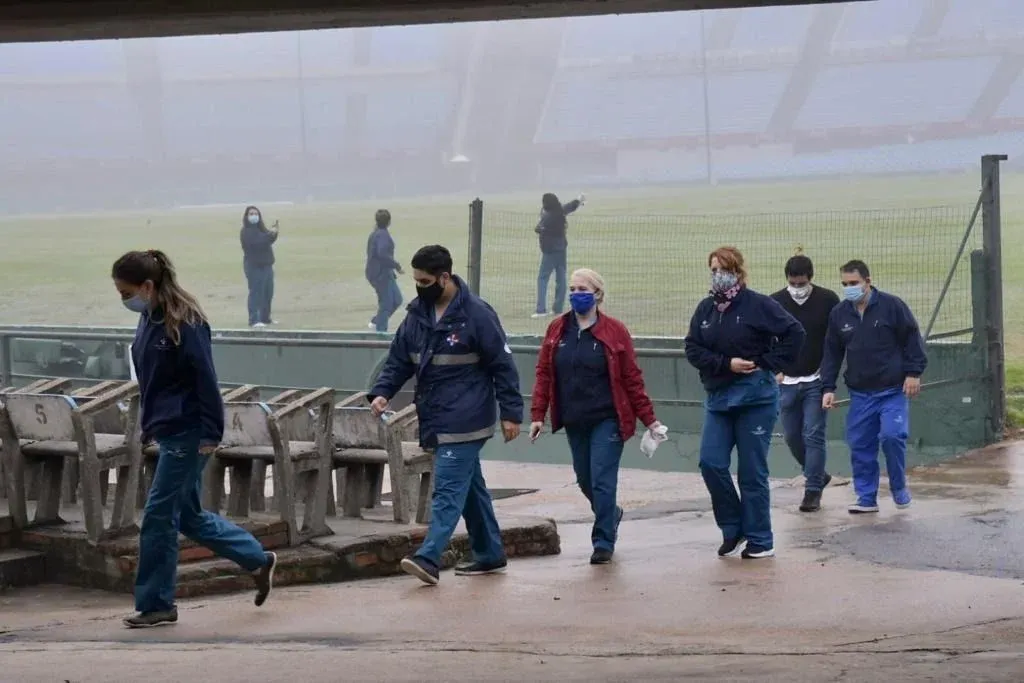 Al salir, Nicolás Barán contó cómo fue el procedimiento, al que la prensa no tuvo acceso, más allá de la parte techada de la puerta 4 custodiada por la funcionaria Analía. "Nos hacían pasar de a dos, pisábamos una alfombra sanitizante, nos daban alcohol en gel y nos metían un hisopo en cada fosa nasal. Fue bastante molesto".