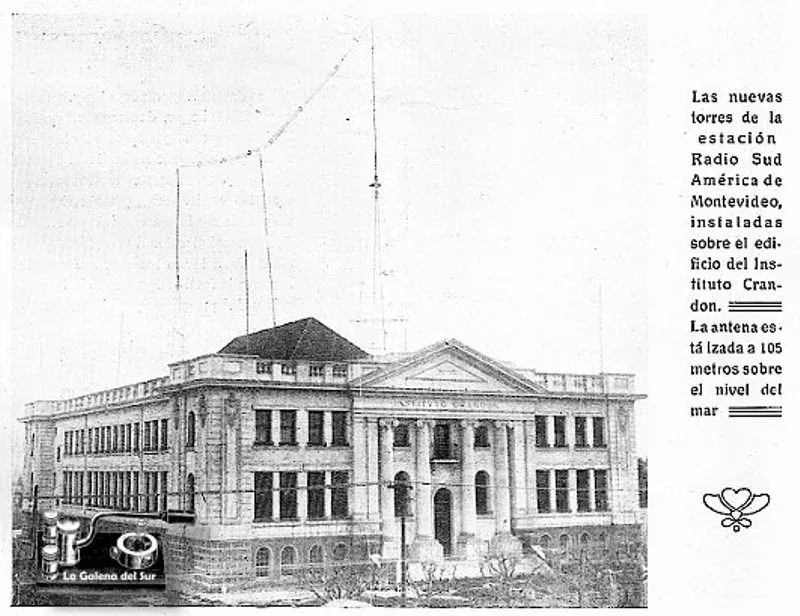 La antena en la azotea del Instituto Crandon para la primera transmisión radial de un clásico, que fue el que Peñarol le ganó 1-0 a Nacional en 1925