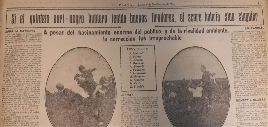 En lo que fue aquel retorno del clásico a un escenario emblemático como el Gran Parque Central, no deja de sorprender lo que se escribió luego del mismo en el diario El Plata.