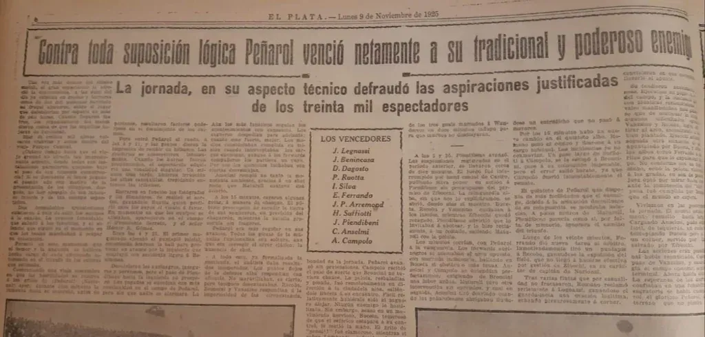 Una revista partidaria de Peñarol informaba de aquel triunfo clásico ante Nacional de 1925