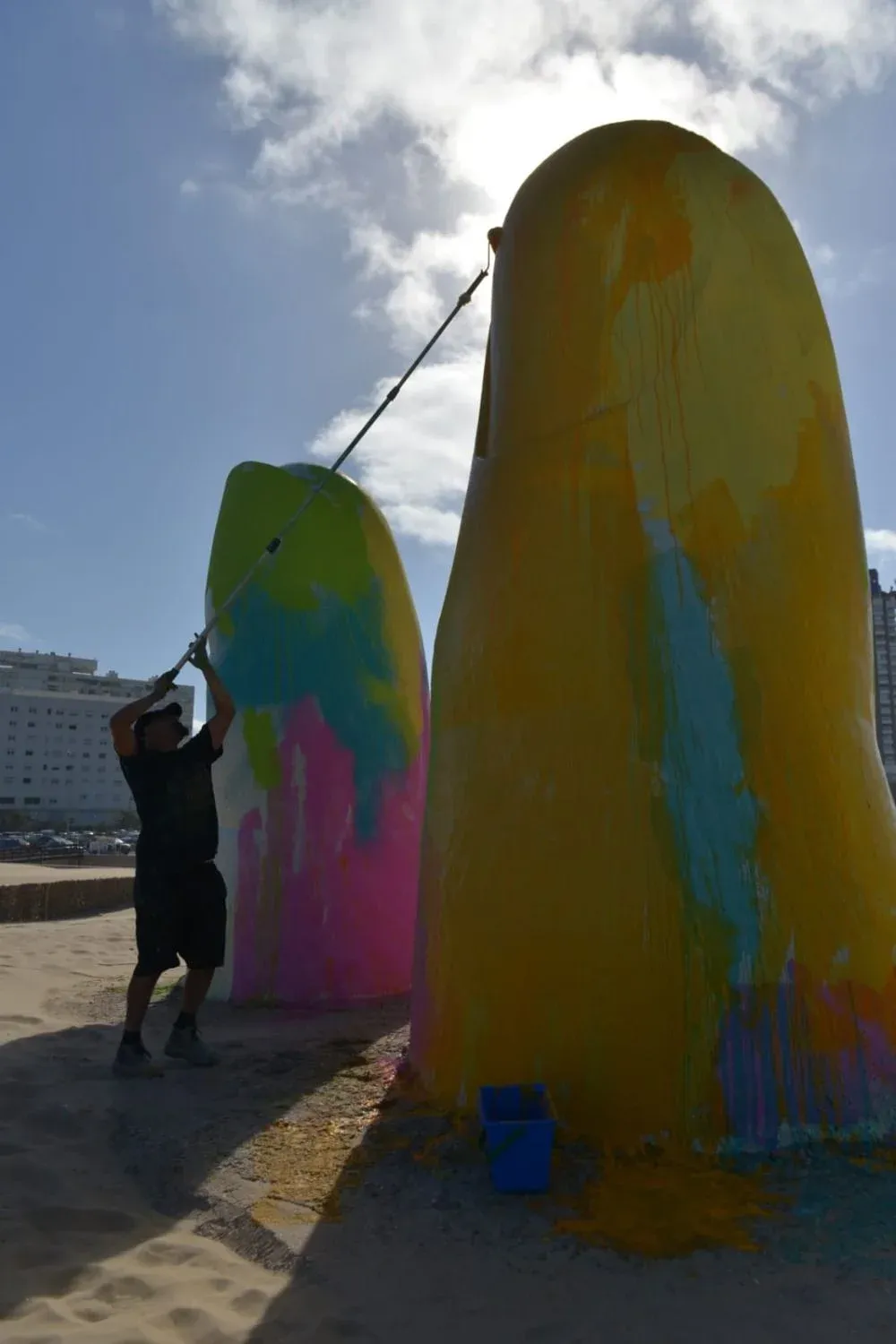 Punta del Este parecía estar bastante quieta, hasta que una acción artística hizo el ruido suficiente como para marcar que la temporada estival había estallado. Fue el pasado jueves 2 de enero en la parada 1 de la Brava. Color, mucha gente atolondrada con las selfis y un hombre de mameluco que no paraba de gritar y sacudir pintura para todos lados.