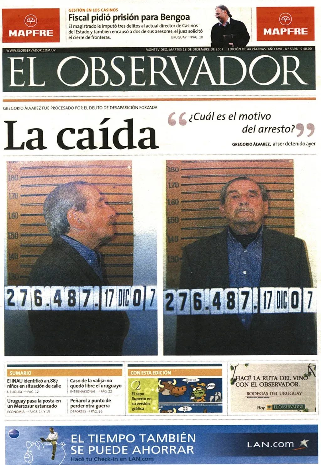 El rostro del exdictador Gregorio Álvarez, de frente y de perfil con el número de expediente que lo expone como delincuente procesado por cometer delitos contra los derechos humanos, en la tapa del 18 de diciembre de 2007, revela uno de los resultados de la política de Vázquez tendiente al castigo de protagonistas de la dictadura militar. Además, a partir de las excavaciones en establecimientos militares, se pudieron hallar los restos de algunos desaparecidos, lo que curó una mínima parte de una herida que sigue abierta.