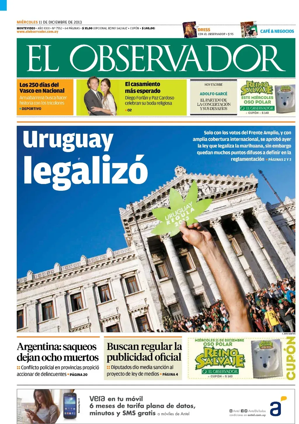 “Arrasó”, tituló El Observador el 1 de diciembre de 2014 luego de que Vázquez repitiera el plato y esta vez sacándole a su contrincante Luis Lacalle Pou 12 puntos de ventaja en el balotaje.
