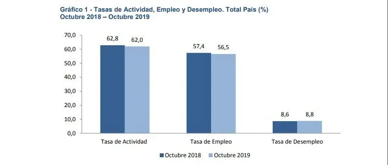 La tasa para el total del país se ubicó en 56,5%, 0,9 puntos porcentuales por debajo de octubre de 2018 (57,4%) y 0,3 por encima de setiembre.