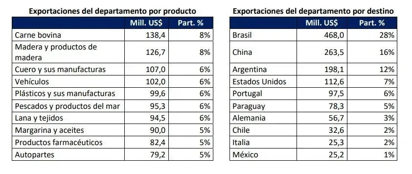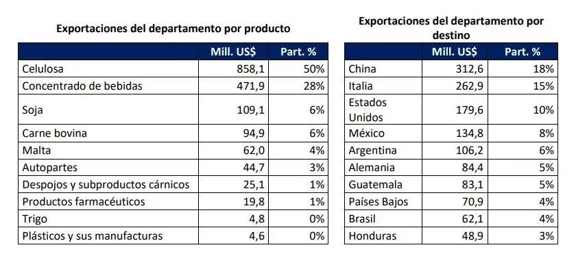 Hay un departamento que le arrebata a la capital el primer puesto, gracias a que cuenta con una de las dos plantas de celulosa instaladas en el país y una planta de concentrados de bebidas.