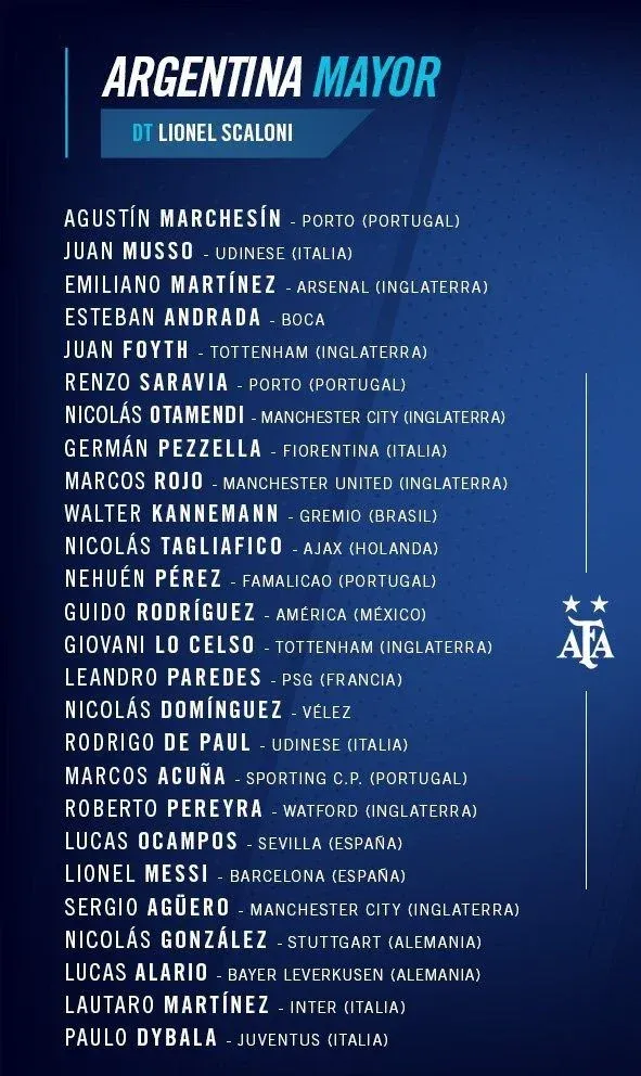 Otro que vuelve en la albiceleste es Sergio "Kun" Agüero. A continuación la lista que se confirmó este jueves: