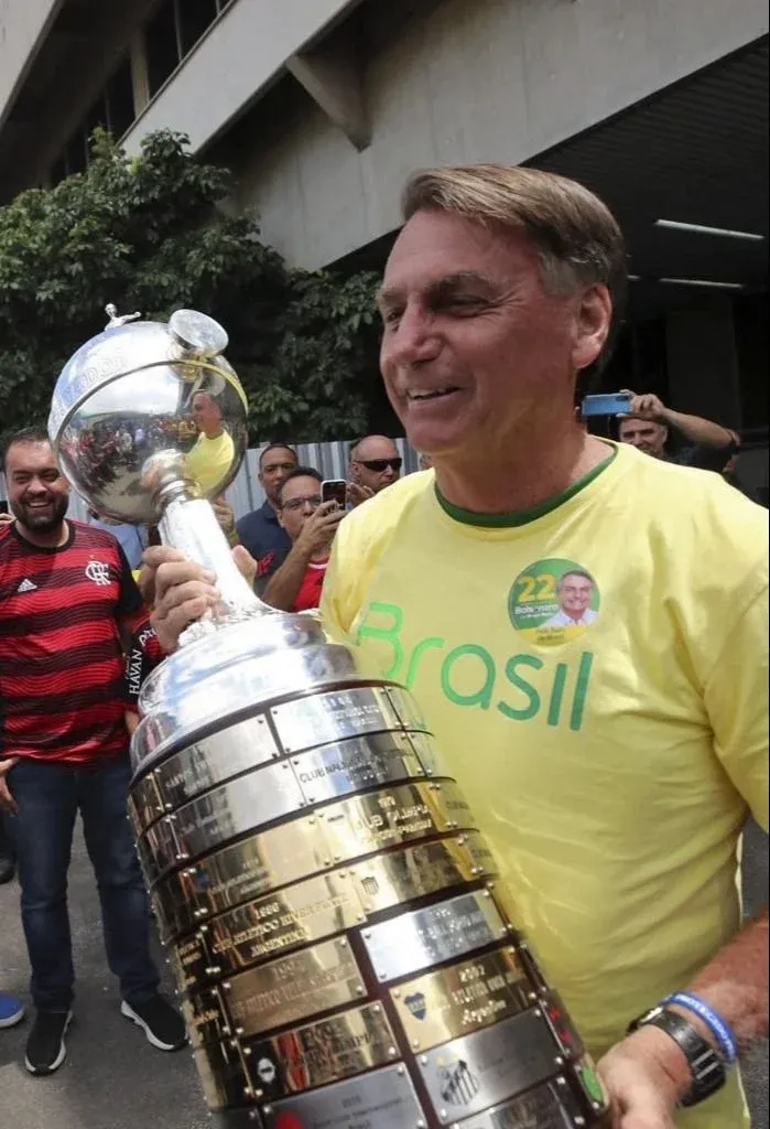 En imágenes divulgadas por el equipo de campaña, se observa a Bolsonaro alzando la tercera Libertadores ganada por el 'Fla', el equipo más popular de Brasil con más de 40 millones de seguidores, y rodeado de parte de la delegación rojinegra.