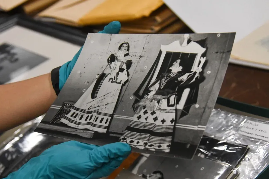Magdalena Charlo, archivóloga, corre las estanterías del depósito mientras busca algunos de los pequeños tesoros en cuyo hallazgo participó. El archivo tiene múltiples tipologías documentales y conviven bajo niveles de temperatura y humedad controlados. Busca entre las cajas con la mirada y un par de guantes. Saca una, y cuando la abre descubre una serie de fotografías clasificadas que capturaron una etapa fundamental para la artista y una época fermental y fundacional de la compañía municipal: Don Gil de las calzas verdes, Calor y Frío, El inspector. La participación de China en aquel elenco está documentada al detalle.