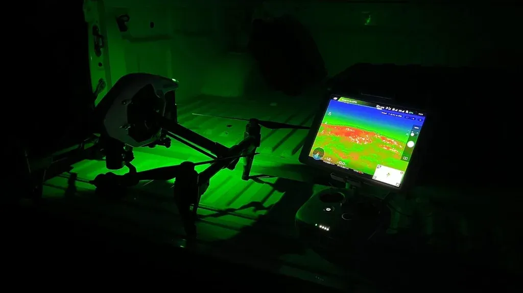 Uno de los drones con los que los bomberos ven los puntos calientes del incendio