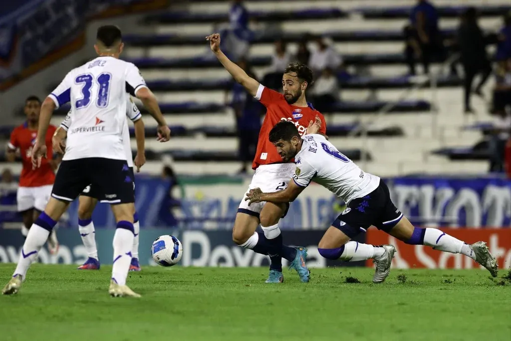 Matías De los Santos marcando a Monzeglio en Nacional - Vélez