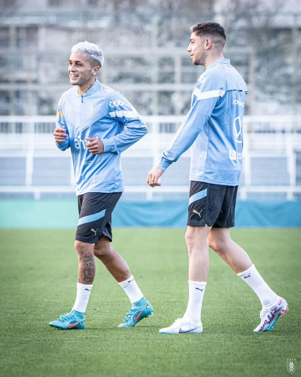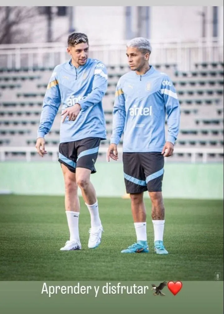 Este miércoles compartió fotos del entrenamiento celeste, entre las que hubo una en la que se lo ve junto a Federico Valverde, la figura de Real Madrid y hoy la principal estrella de Uruguay en la gira asiática.