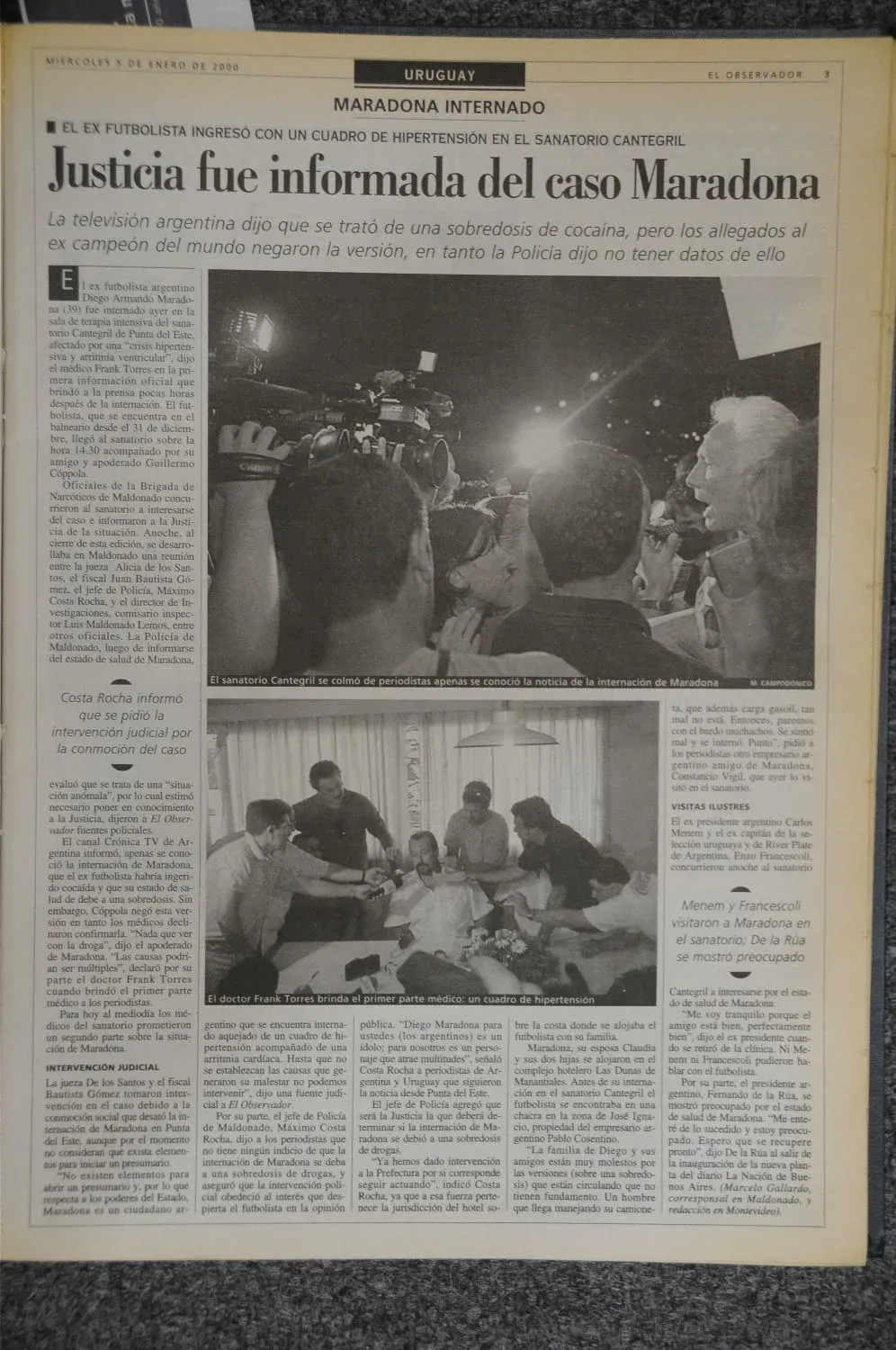 Maradona luego fue trasladado al Sanatorio Cantegril de Punta del Este, donde fue internado, y el caso llegó a los medios con un gran repercusión mundial.