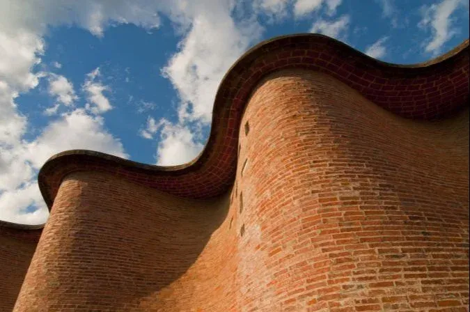 Los muros parten de una línea recta en su base y comienzan a curvarse hacia arriba