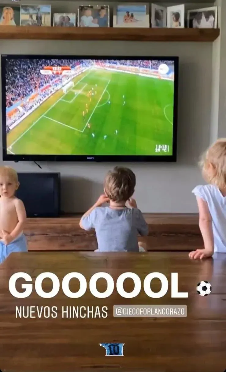 A su vez, también mostró justo la jugada del golazo de Forlán de tiro libre con sus hijos frente al televisor y escribió: "Goooool. Nuevos hinchas", en alusión a los pequeños.
