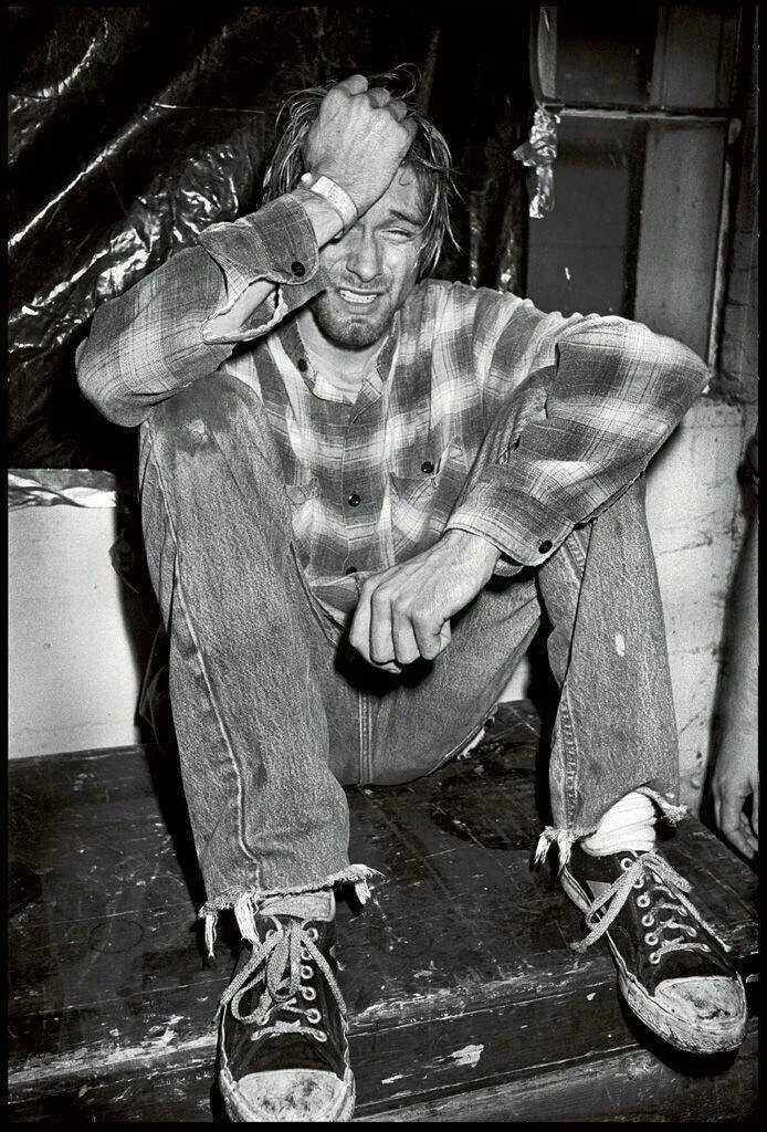 11- Ese mismo padecimiento provocó que el uso de heroína por parte del música fuera cada vez más intenso, más allá de que él no había llegado a la droga con fines médicos. Cobain tuvo contacto con las drogas desde niño, ya que a los trece años probó por primera vez la marihuana. El abuso de la heroína afecto varias veces sus giras y conciertos. Una de las fotos más tristes de las que se tienen registro sobre sus momentos más complicados en el escenario es una del fotógrafo Ian Tilton que se publicó en el semanario Sounds, en la que se lo ve con un enorme gesto de dolor, llorando, sentado en el piso y con la mano derecha sosteniéndose la cabeza.