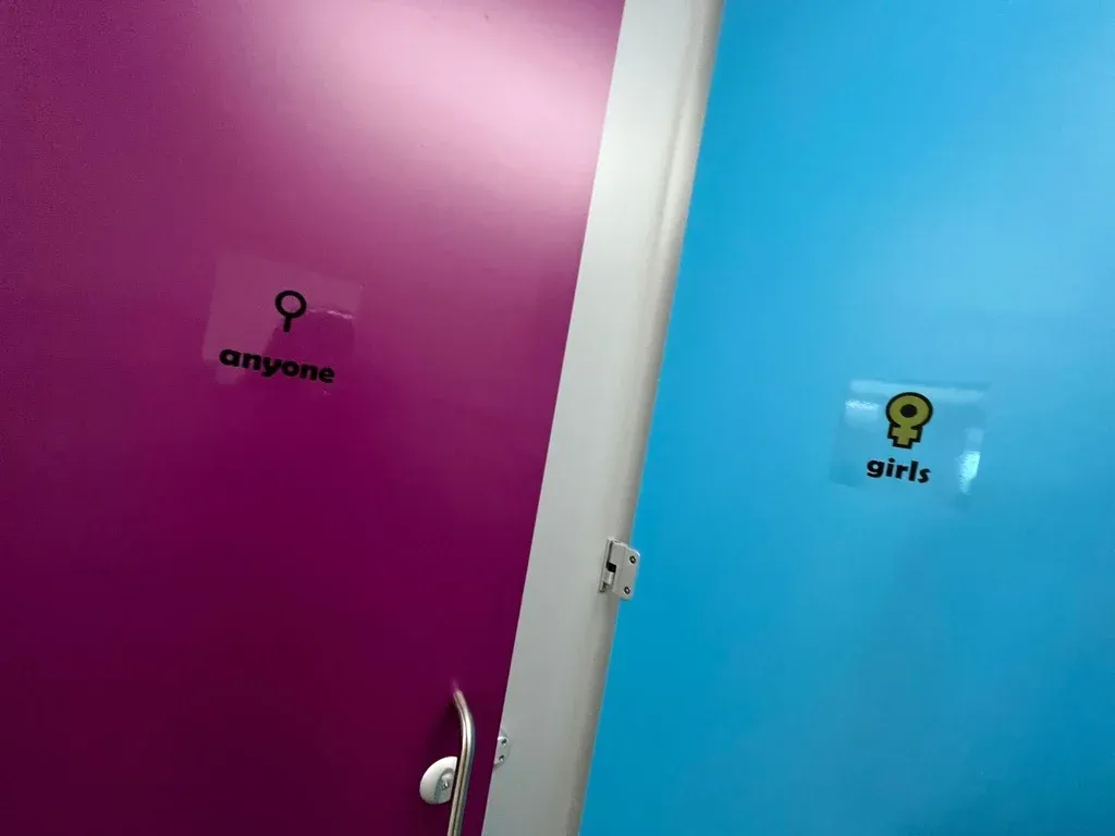 Otro aspecto que llama la atención es que cuentan con tres baños sin género. Stannard explicó que el año anterior habían tenido algún incidente dado que se podía ver por arriba y por debajo de las puertas de los baños y a raíz de eso habían decidido reformarlos para que no quedara ningún hueco libre. A raíz de eso, y en diálogo con los delegados estudiantiles, decidieron que como había nueve baños y no había manera de distribuirlos equitativamente entre varones y niñas, quedarían tres para unos, tres para otros y los restantes podrían ser usados por ambos.