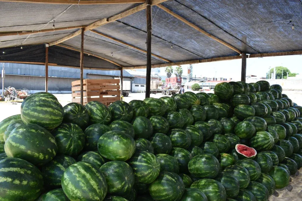 La llegada masiva de la producción de sandías, que se desarrolla sobre todo en Rivera, cambió la fisonomía en el Mercado Modelo, concretamente donde tradicionalmente se instala la infraestructura para la comercialización de ese producto.