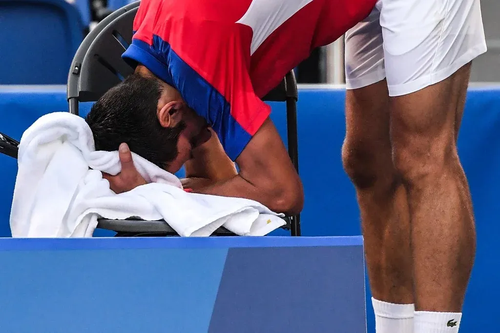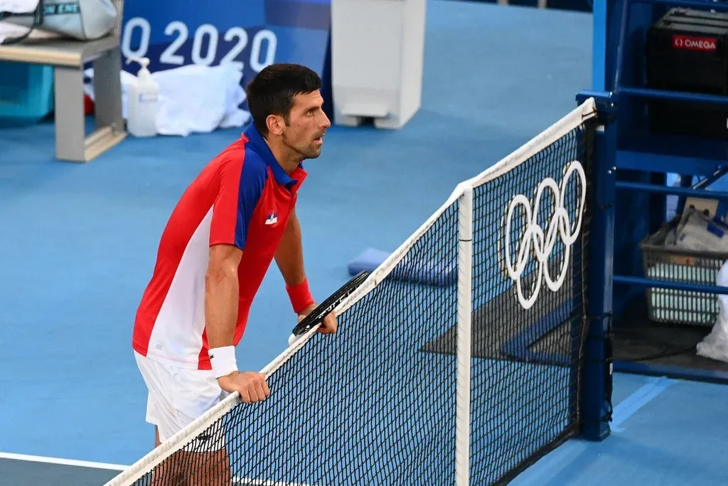 Djokovic se apoya en la red y no puede creer que se quedó sin medallas en los Juegos