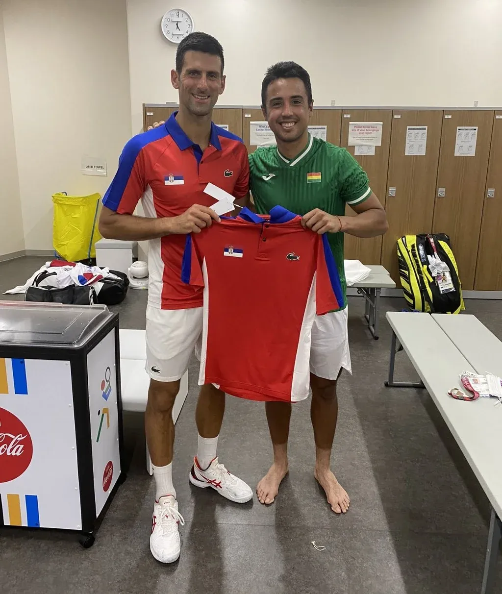 Pese a perder, Dellien se llevó un trofeo después del partido: la camiseta del serbio.