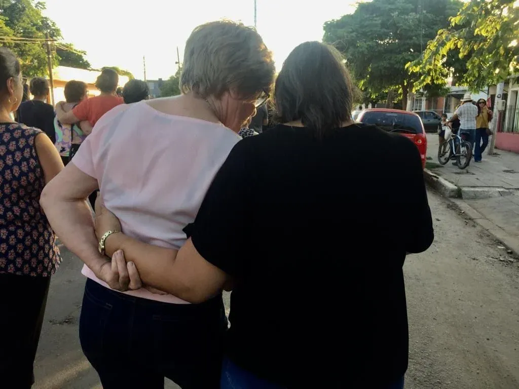 En la plaza 25 de Agosto unas mil personas de la ciudad escuchan a través de un parlante a la madre de Christian, que tiembla, llora y, con la cabeza baja, se apoya del brazo de una acompañante para caminar. Está rota.