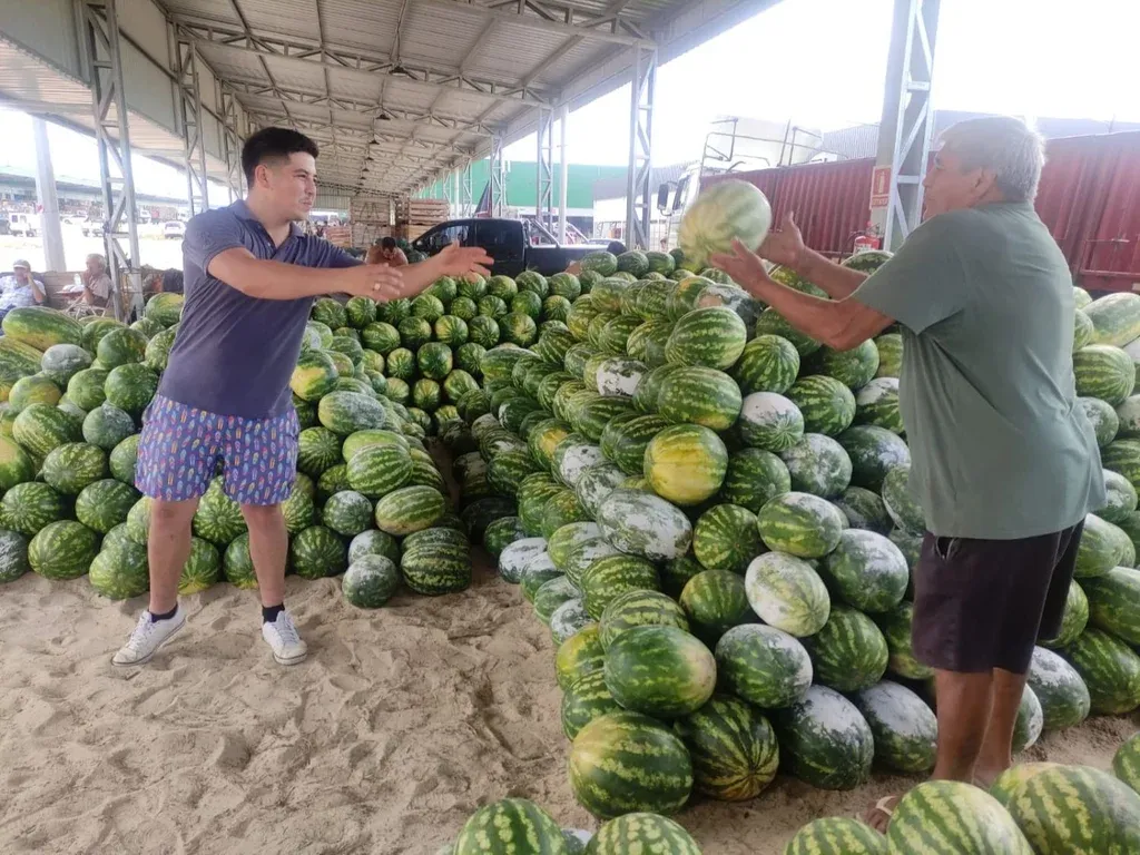 El abuelo de Braian hace 40 años que vende sandías en el mercado mayorista, y su padre hace 15. A pocos días de cumplir los 74 años, el abuelo sigue en actividad: carga sandías, habla con los camioneros que llegan con su producción y se ocupa de la parte comercial. Según contó su nieto, después de cuatro décadas, extraña un poco el viejo mercado.
