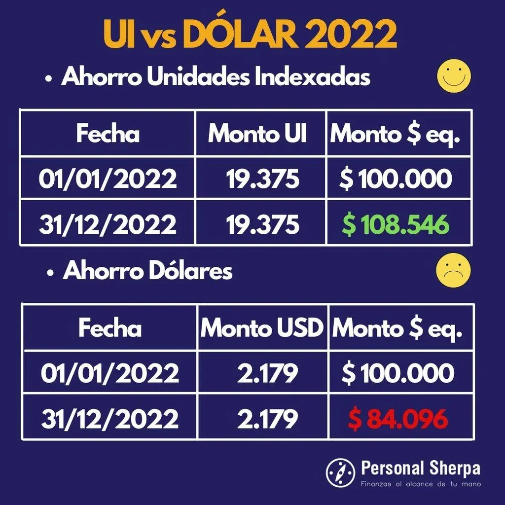 La Unidad Indexada (UI) como opción de ahorro le volvió a ganar al dólar en el año que pasó. De hecho, invertir en esa unidad de valor dejó más rédito que apostar por la moneda estadounidense en las últimas dos décadas.