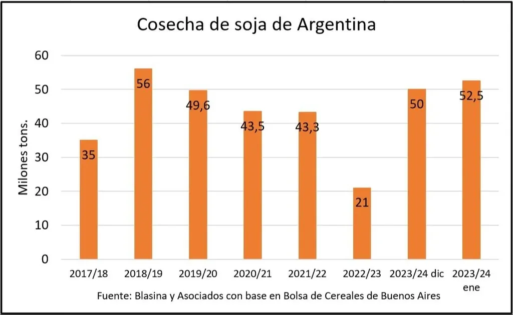 La Bolsa de Comercio llevó de 55 a 56,5 millones de toneladas su estimación de producción.