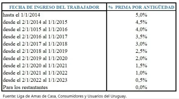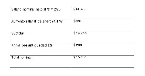 Ese ajuste que se hace efectivo el próximo mes también va acompañado, en caso que corresponda, de una prima por antigüedad que es de 0,5% de aumento por año trabajado, con un máximo de 5%.