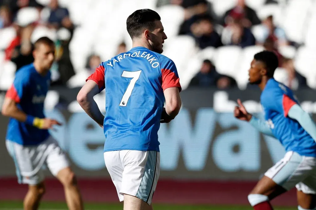 Ian Kington / AFP Declan Rice con la camiseta de Yarmolenko en West Ham