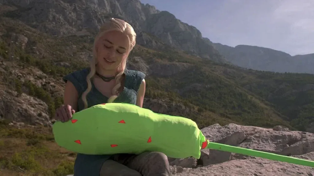 Quitando las imágenes generadas digitalmente, el oso no es más que un hombre vistiendo un traje verde sosteniendo una larga varilla con una pelota en la punta, hecha para replicar los movimientos de la cabeza del animal. Cómo convirtieron un muñeco de color en un animal salvaje hay que preguntárselo a Alan Taylor, director de ese episodio. En una entrevista con Entertainment Weekly explicó que fue un proceso “increíblemente desalentador” para los actores por las dificultades del rodaje y que gran parte del mérito lo tienen los responsables de la animación.