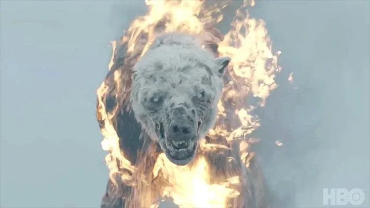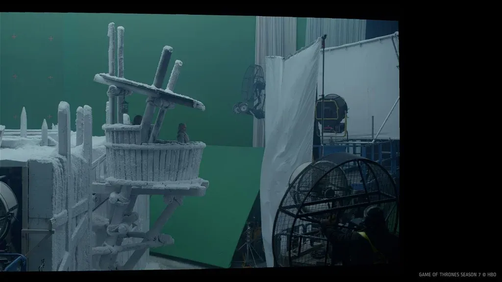 La séptima temporada tiene una escena bastante memorable en su episodio número seis. Jon y un séquito de salvajes cruzan el muro en busca de un caminante blanco y se encuentran con un oso polar convertido en zombi. El rodaje de esta escena se hizo en una gran caja de CGI en la que los actores no tenían casi referencias porque todo se hizo con efectos especiales en una computadora.