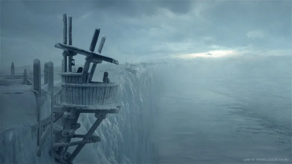 Otras locaciones, como el muro de hielo en el norte, implicaron un desarrollo tecnológico mayor porque los efectos especiales, además de darle forma a la ambientación, debían transmitir el frío y la hostilidad. Para lograrlo se modificó la textura y el color.