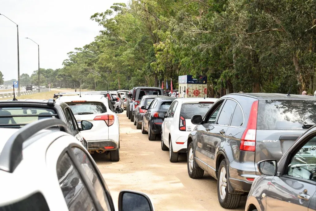 Fila de autos en el autotest de Punta Ballena.