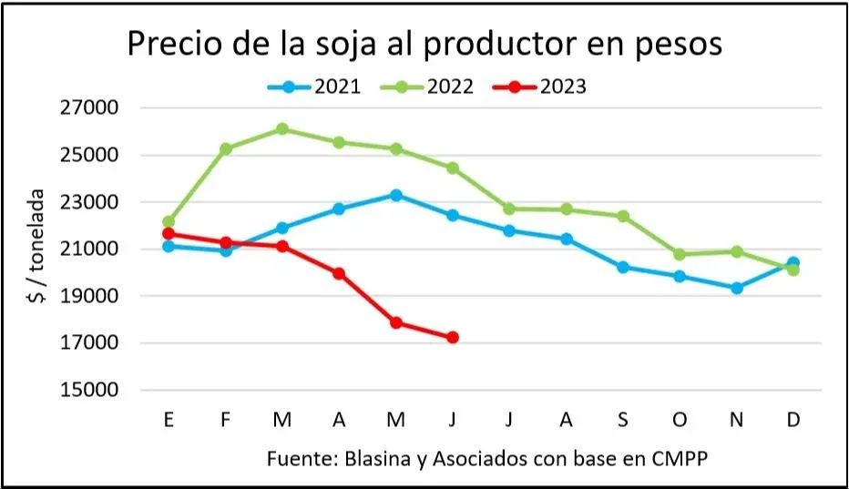 La desvalorización, particularmente en soja y ganadería, se ha acentuado en los últimos 12 meses. Varios productos del agro tienen sus precios en este mes entre 25% y 30% por debajo de hace un año, tomados en pesos, de acuerdo a las cotizaciones de la Cámara Mercantil de Productos del País.