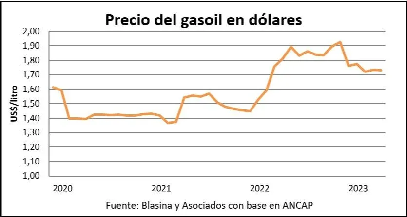 El precio del litro de gasoil en dólares está hoy 11% arriba del valor en enero de 2021, considerando que desde mayo de 2022 bajó 10,6%.