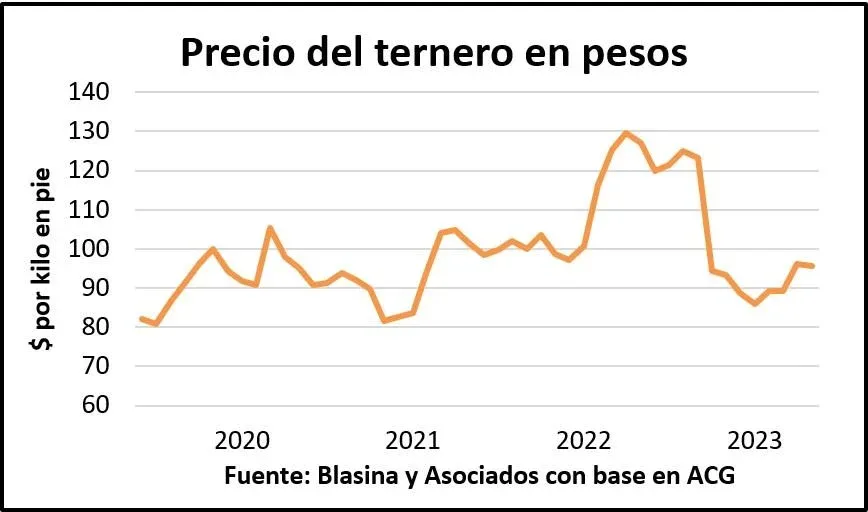 El ternero se sitúa 4% en pesos encima de 2020 y 14% arriba de enero de 2021, con una caída de 20% en pesos en los últimos 12 meses.