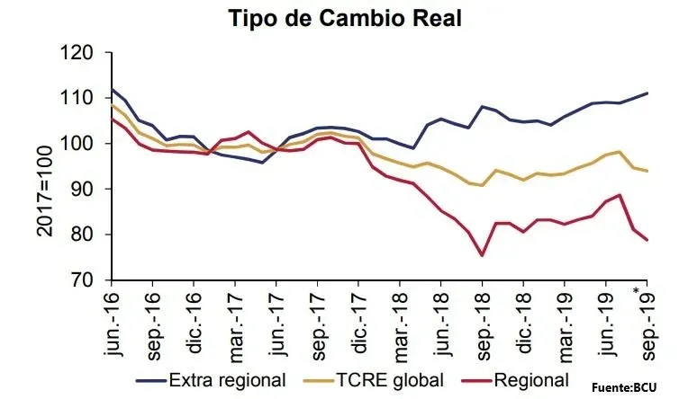 El tipo de cambio real efectivo (TCRE) global se mantuvo estable en el tercer trimestre con respecto al segundo. Por otro lado, en la comparación interanual se verifica una depreciación real de 4,2%, tanto respecto a la región (3,9%) como frente a la extraregión (4,4%).
