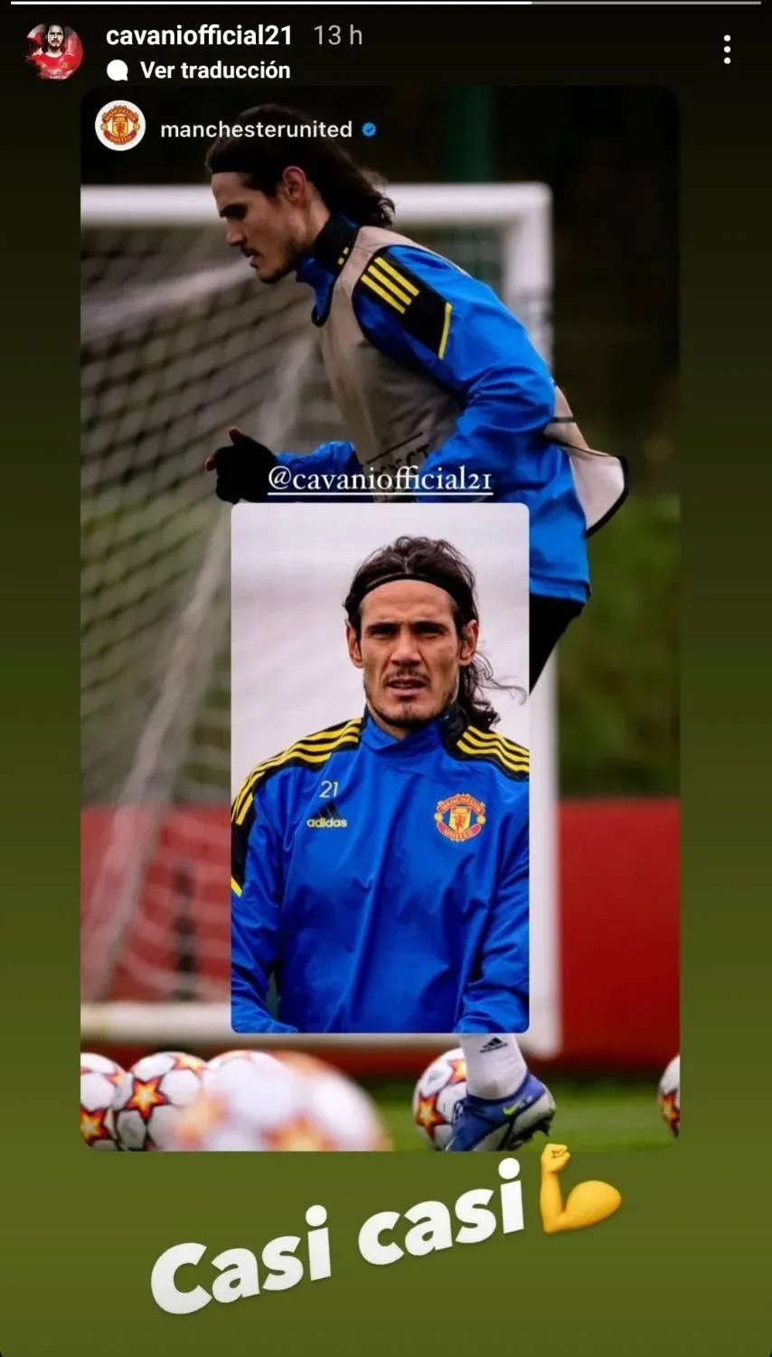 Cavani está casi pronto para volver a jugar, después de un mes afuera de las canchas debido a una lesión en un tendón que lo llevó a realizarse un tratamiento especial en una clínica de España.
