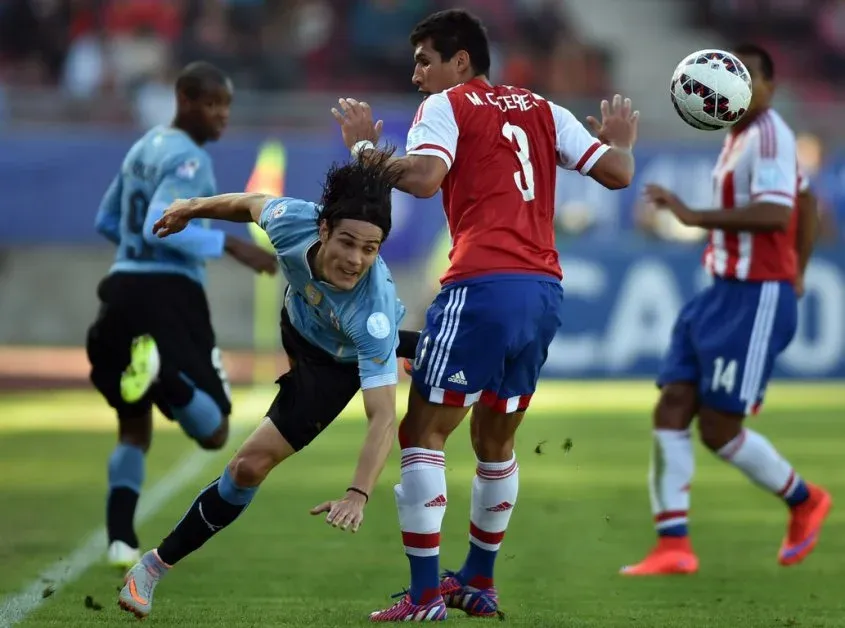 Cavani jugando con Uruguay ante Paraguay en un partido anterior