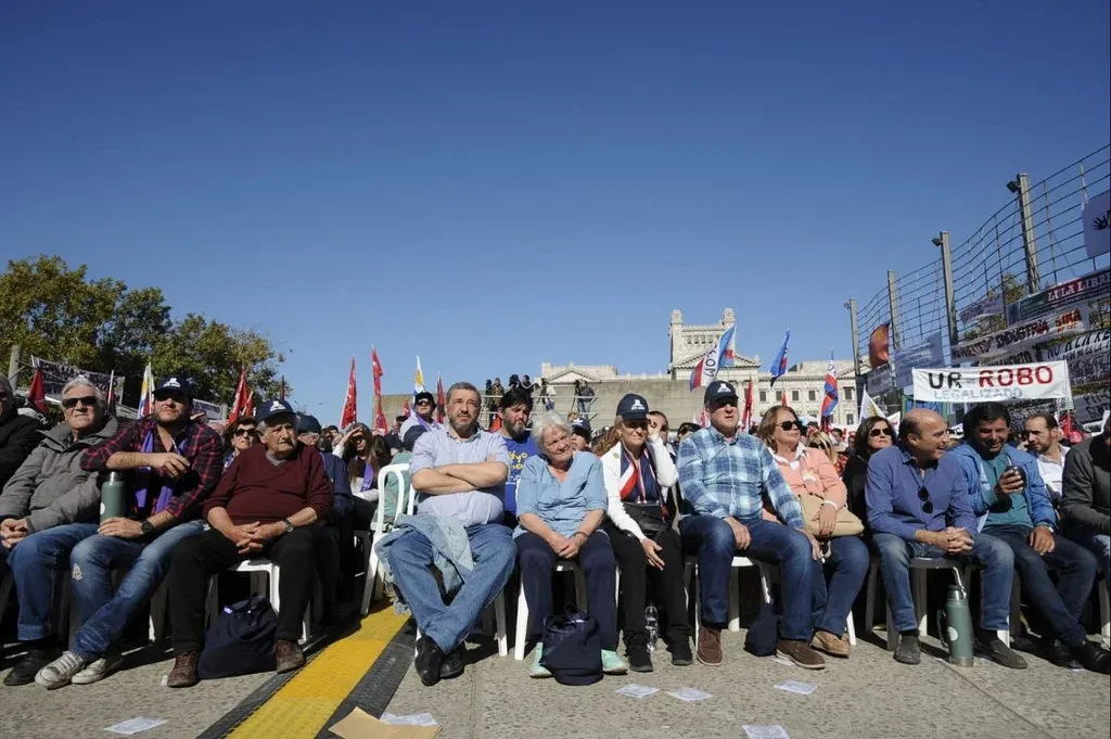 Pero este acto no era uno más. Era un 1° de mayo de un año electoral y, en palabras del sindicalista Joselo López, un año en que las elecciones “dan la sensación que van a estar mucho más ajustadas que otras”. Era un 1° de mayo en el que, como pocas veces, en el estrado se notaba la ausencia de los referentes de dos sindicatos grandes como el de los funcionarios del Estado y los trabajadores municipales (López y Valeria Ripoll respectivamente). Era un 1° de mayo que amaneció con una central obrera dividida y con una grieta más notoria que en otras ocasiones.