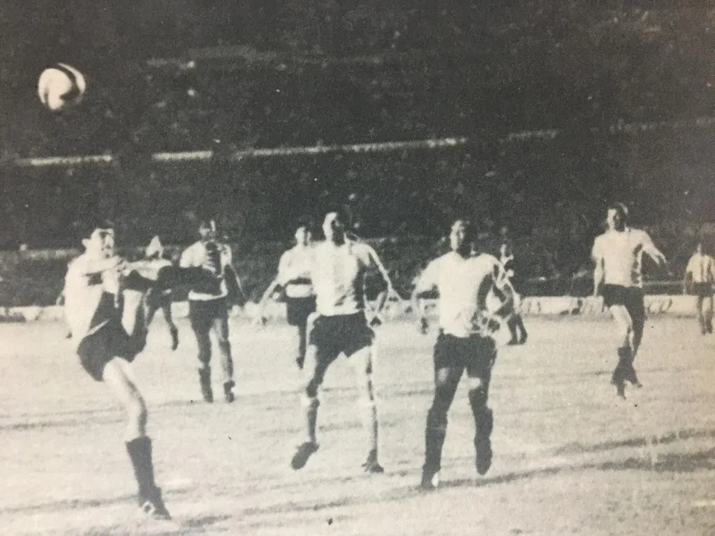 Despeja Mugica y al lado, Elgar Baeza en la final de la Copa América de 1967 en Montevideo ante Argentina